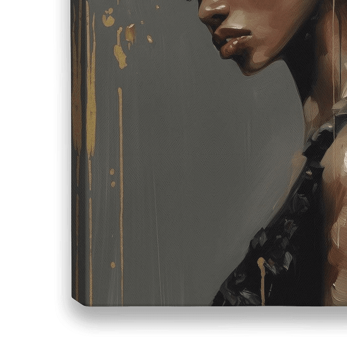 Life is better in black and gold. Modern an abstract portret in zwart en goud tinten. Dit werk heeft een chique uitstraling en zal prachtig staan in je interieur.
