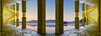 Een digitaal vervreemd beeld met kronkelende gangen op de voorgrond en de Chiemsee op de achtergrond combineert architectuur en natuur op surrealistische wijze. De gangen zouden labyrintisch kunnen zijn, hun structuren gefragmenteerd en vervormd, alsof ze zich tot in het oneindige uitstrekken. De Chiemsee, kalm en uitgestrekt, vormt een…