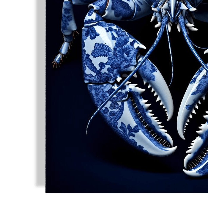 Prachtige Kreeft in de stijl van Delfts Blauw porselein. Fijne versiering zowel op het lijf als op de scharen. Dit kunstwerk is heel decoratief en past zowel in een moderne keuken, een grote woonkamer of als blikvanger in een restaurant. Eén van de topstukken uit de serie kreeften: Lobster Luxe. Met veel liefde gemaakt door OTTI, die zelf een kreeft als sterrenbeeld heeft.