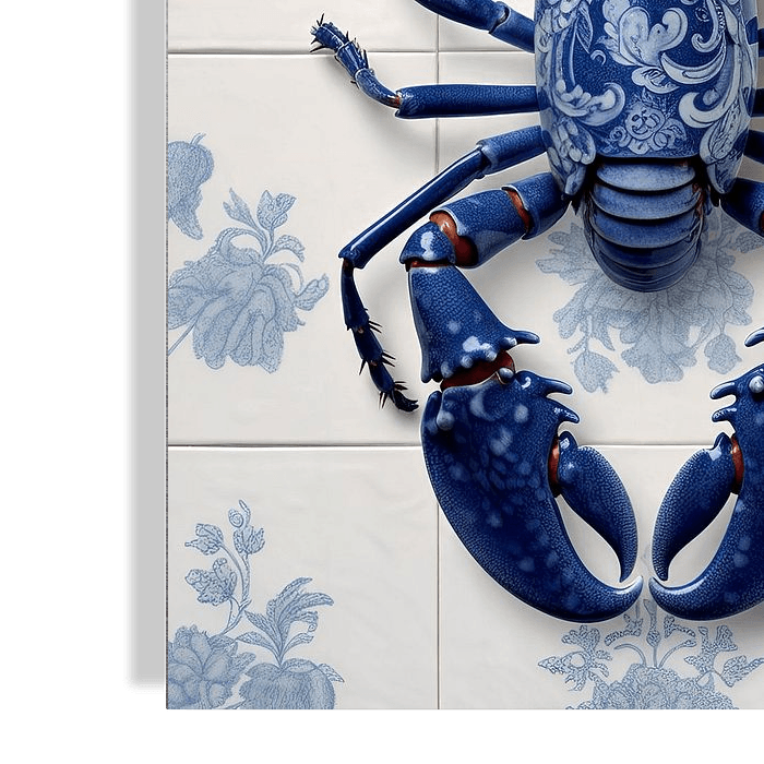 Prachtige Delfts Blauwe keramieken kreeft op antieke keuken tegels. Dit kunstwerk staat prachtig in elke keuken, eigentijds of klassiek. Maar doet het ook goed in een modern interieur of als eye-catcher in een restaurant. Eén van de topstukken uit de kreeften serie: Lobster Luxe. Met veel liefde en plezier gemaakt door OTTI, die zelf een kreeft als sterrenbeeld heeft.