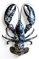Prachtige luxe diep donkerblauwe, bijna zwarte Kreeft, met Delfts Blauw bloemen patroon op een witte neutrale achtergrond.