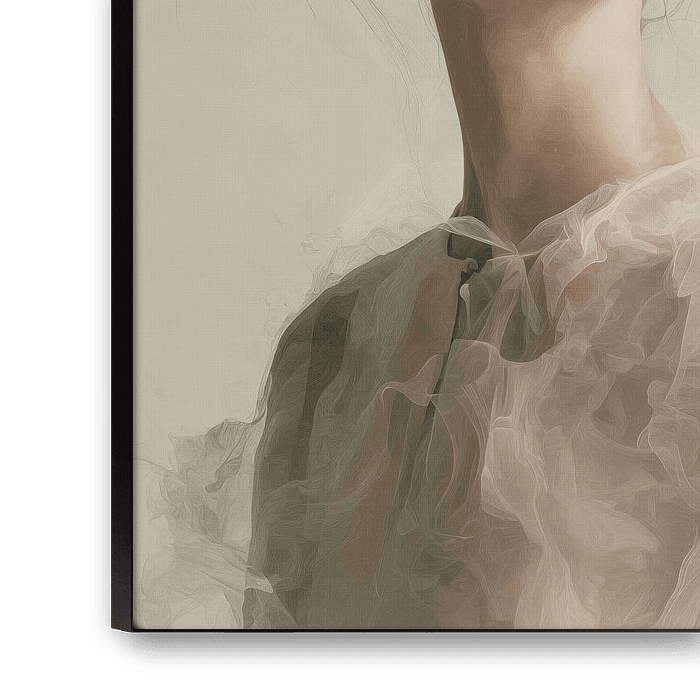 Een etherisch kunstwerk waarin zachte pasteltinten en beweging samensmelten tot een dromerige compositie. De delicate lijnen van zwevend haar en transparante stoffen creëren een gevoel van gewichtloosheid, terwijl de subtiele rookeffecten een mysterieuze sfeer oproepen. Het beeld balanceert perfect tussen abstractie en realisme, waarbij de zachte contouren en vloeiende vormen een bijna poëtische spanning opbouwen.
