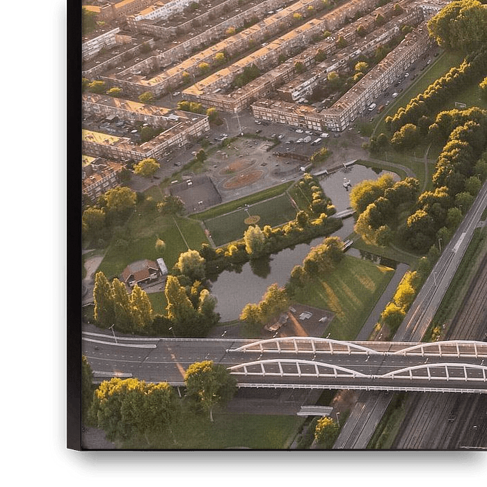 Jouw gekozen kunst op doek, gespannen in een aluminium frame. Snel en eenvoudig te verwisselen voor een frisse uitstraling en helemaal zoals jij het wilt.