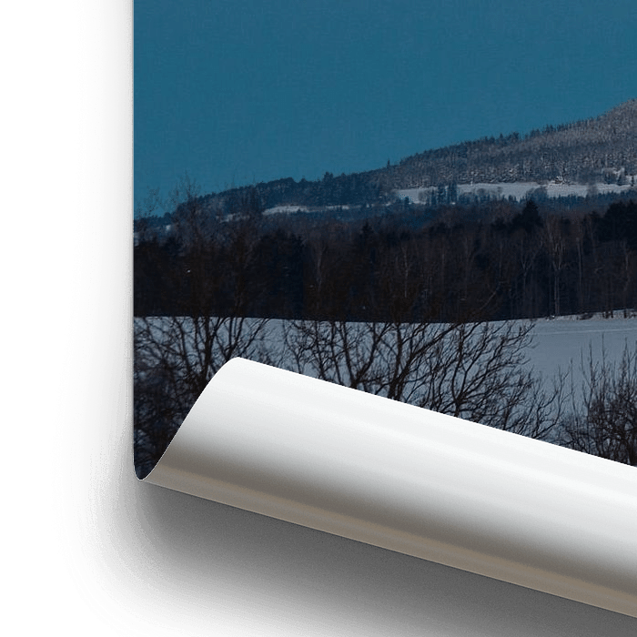 Maansverduistering in het ochtendlicht boven de besneeuwde bergen van het Reuzengebergte, ofwel Krknose, in Tsjechië. Vlak voor zonsopkomst, werd de maan nog verduisterd door de aarde.