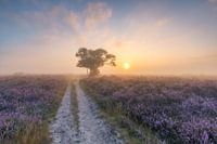 Deze foto is gemaakt nabij Hilversum op de Zuiderheide (Noord-Holland, Nederland). Deze morgen gaven ze mist op in combinatie met middelmatige bewolking. Toen ik aankwam was het behoorlijk mistig, maar de zon brak er na zonsopkomst toch doorheen. Er ontstonden ontzettend mooie kleuren; majesteitelijk gewoon!