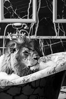 Koop dit leeuwen kunstwerk Majestueuze leeuw in bad - een indrukwekkend badkamerkunstwerk voor je toilet van Poster Art Shop als print op canvas, aluminium dibond, (ingelijste) fotoprint, behang en ArtFrame. Voor jou op maat geprint in Fine-Art kwaliteit.