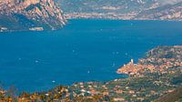 Malcesine vanuit de bergen gefotografeerd met een weids uitzicht over het Gardameer.