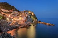 s Avonds in Manarola, een van de vijf klifdorpen van het Cinque Terre National Park aan de Italiaanse Riviera ten noordwesten van La Spezia.