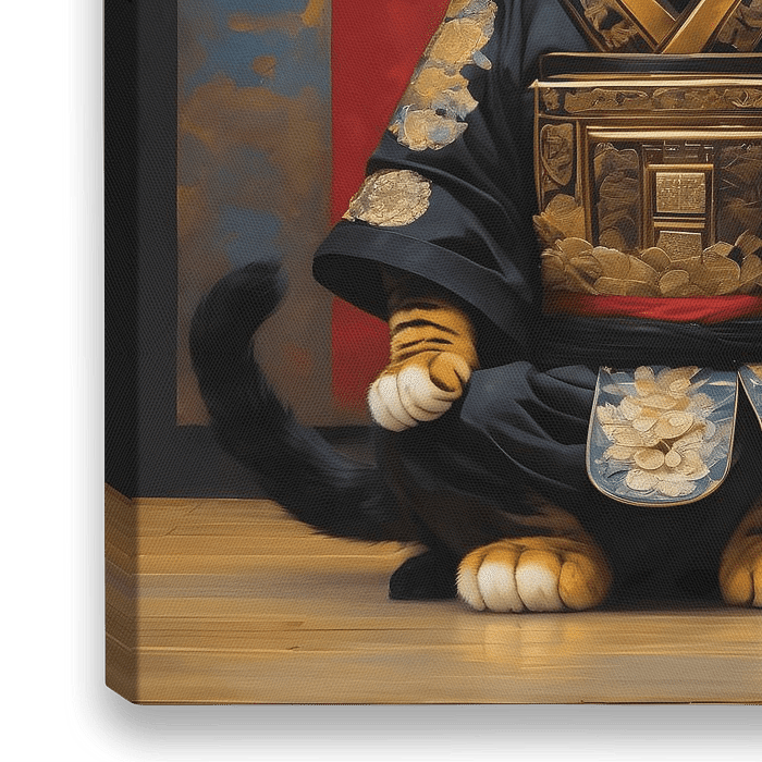 Breng geluk en kunst samen met dit unieke schilderij van een Maneki-Neko, de iconische Japanse gelukskat. In deze surrealistische interpretatie draagt de Maneki-Neko stijlvolle kleding, waardoor traditionele symboliek en moderne fantasie op betoverende wijze samenkomen.