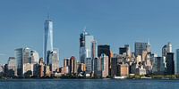 De skyline van Lower Manhattan vanaf de Hudson-rivier, One World Trade Center, New York City, New York, VS