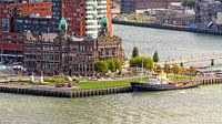 De Wilhelminakade op de Kop van Zuid in Rotterdam, met markant maritiem erfgoed Hotel New York en de Zeesleper Holland