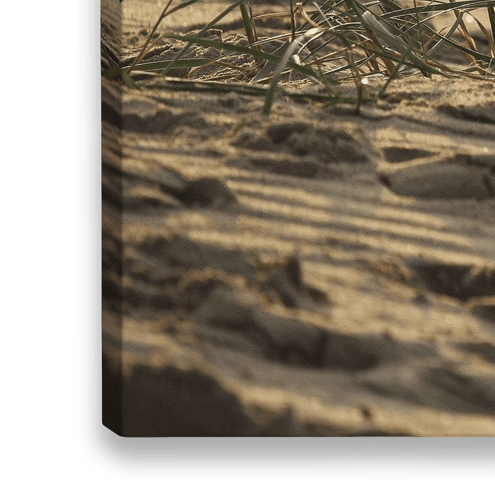 De kustplant Marram-gras (Ammophila) groeit op een zandduin tegen de achtergrond van het lage avondlicht. Gouden uur aan de Zeeuwse kust, Nederland.