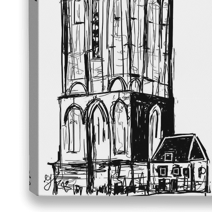 De Martinitoren is geschilderd met acrylverf en inkten.