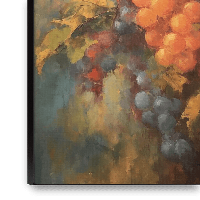 Dit werk uit de serie Faded Dreams toont een stilleven van mediterraanse druiven. Het kleurenpalet van het kunstwerk is ingetogen maar levendig en geeft een dromerige vintage uitstraling aan uw interieur!