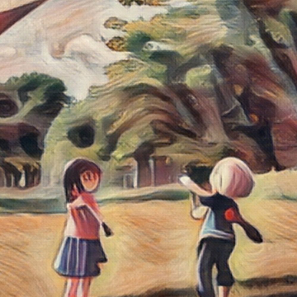 Abstract schilderij van een meisje en een jongen die in een open veld aan het vliegeren zijn. Dit werk roept een zomers gevoel op. Door de warme bruintinten en goud gele accenten krijg je vanzelf ook weer zin in de zomer.