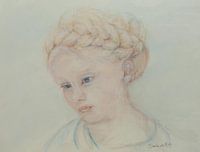 Meisje met gevlochten haar. Handgeschilderd met pastelkrijt.