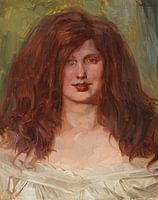 Koop Meisjeskop met ontbloot haar I, Wilhelm Trübner als reproductie op canvas, aluminium dibond, (ingelijste) fotoprint, behang en ArtFrame, op maat geprint in Fine-Art kwaliteit.