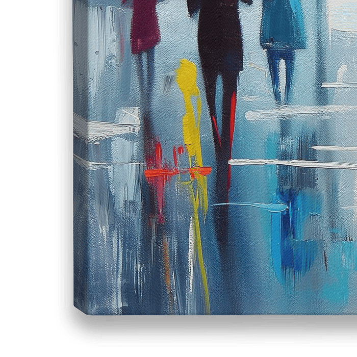 Koop dit schilderij Mensen in de regen van ARTemberaubend als reproductie op canvas, aluminium dibond, (ingelijste) fotoprint, behang en ArtFrame, op maat geprint in Fine-Art kwaliteit.