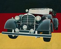 Koop dit Popart kunstwerk Mercedes 770K Limousine uit 1938 voor de Duitse vlag van Jan Keteleer op canvas, aluminium dibond, (ingelijste) fotoprint, behang en ArtFrame, op maat geprint in Fine-Art kwaliteit.
