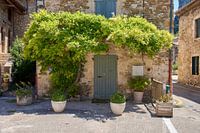 Historische gevel met oude deuren en ramen in het Franse plaatsje Saou