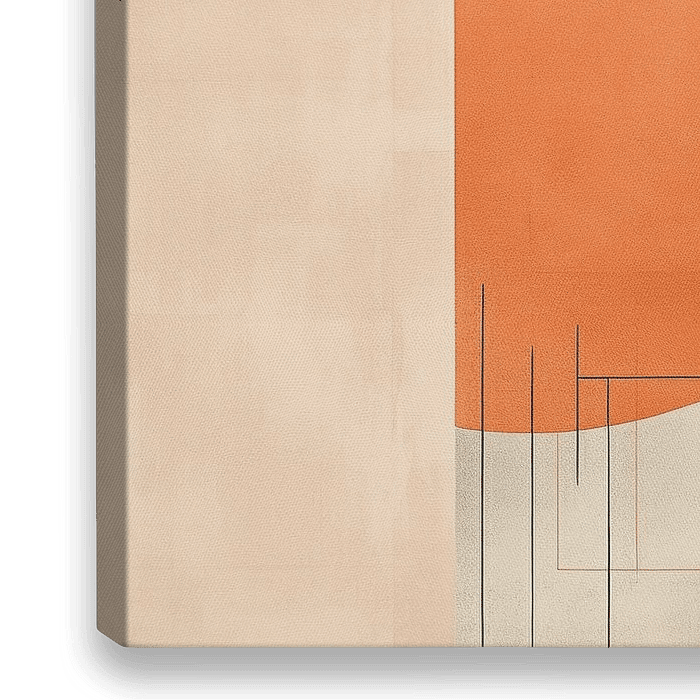 Minimalistisch Abstract - Hier zie je een strak, minimalistisch kunstwerk waarin geometrische vormen samenkomen. Een groot, peach fuzz gekleurd halfrond overlapt een solide, donker cirkelvormig element, terwijl een derde transparante cirkel subtiel afsteekt tegen de neutrale achtergrond. Een paar delicate lijnen voegen een extra laag…