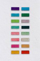 Minimal Art / Reliëf werk met 2 rijen kleurrijke stukjes gestructureerd materiaal.