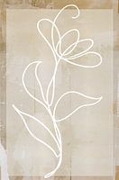 Lijntekening van een Minimalistische witte bloem op een urban achtergrond - beige achtergrond