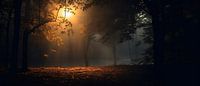 Een lantaarnpaal verlicht het park met een warme gloed. Tegen de donkere achtergrond komt het licht tot leven, creëert een betoverende sfeer en werpt zachte schaduwen op de grond. Het park wordt omhuld door de magie van het schijnsel, waardoor een rustige en uitnodigende ambiance ontstaat voor wie de avondwandeling onder het heldere…
