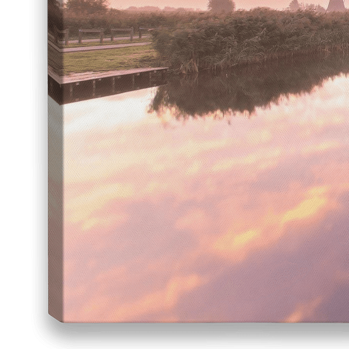 Nevel en zonsopkomst zijn mooie condities voor een sfeerplaat. Door de nevel worden de kleuren echte pastelkleuren. Deze foto is gemaakt tijdens zo'n zonsopkomst op Werelderfgoed Kinderdijk (Zuid-Holland, Nederland), bij de Kinderdijkse molens. De reflectie was perfect, doordat het windstil was. De watergang geeft een wijds en…