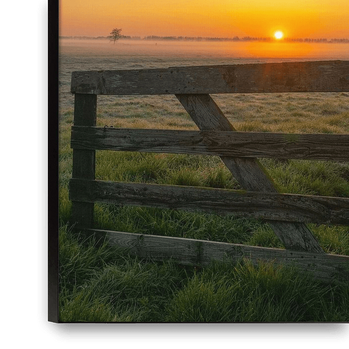 Koop dit landschapskunstwerk Mistige zonsopkomst boven het weiland van Bram Lubbers op canvas, aluminium dibond, (ingelijste) fotoprint, behang en ArtFrame, op maat geprint in Fine-Art kwaliteit.