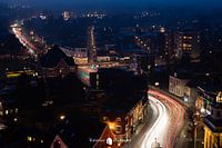 Mitchamplein in Hengelo in het donker. Door lange sluiter worden de light trails zichtbaar en krijg je een overgetelijke foto.