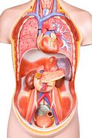 In dit model van het menselijk lichaam zie je heel veel verschillende organen en weefsels. Het wordt gebruikt op de middelbare school voor het onderwijzen van kinderen in de biologie les over medische kwesties.