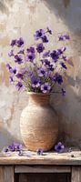Modern Bloemen Schilderij | Rustic Purple Elegance Unveiled - Modern impressionistisch stilleven met paarse bloemen in terracotta vaas