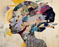 Details: vrouw, profiel, abstract, modern, grafisch, kleurrijk, dynamisch, kunst, portret, mixed-media