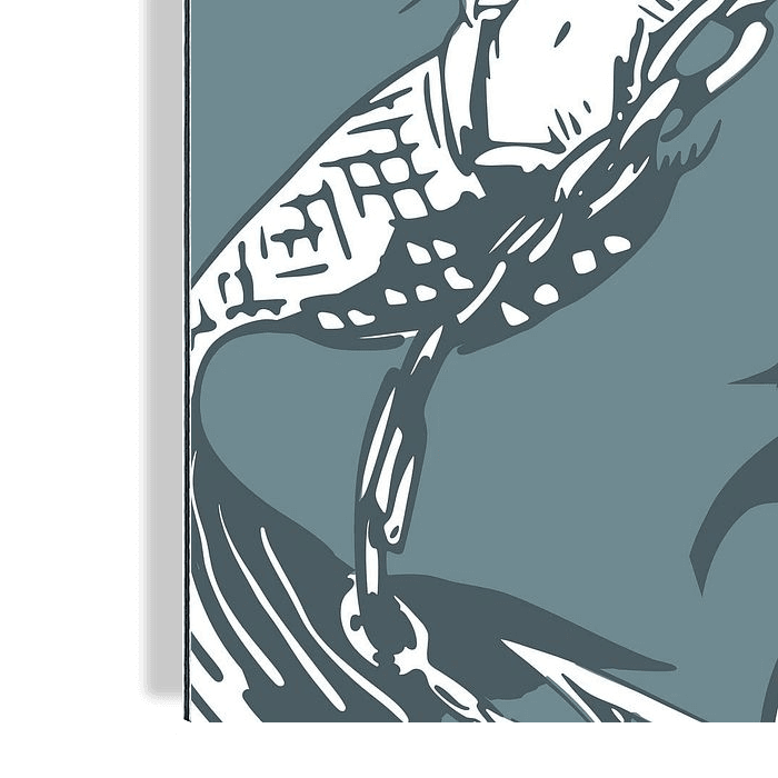 Twee zeemeerminnen. Digitaal kunstwerk van onderwater scene. Strak en modern werk in drie kleuren, wit en blauw.