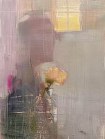 Modern abstract in pastelkleuren. Dit werk laat bewust veel aan de verbeelding over. Is het een portret of toch iets anders? Dat mag de kijker zelf invullen.