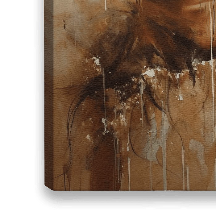 Modern en abstract expressief portret in aardetinten. Maak dit werk helemaal passend voor jouw interieur: kies zelf het formaat en materiaal. Met dit werk haal je een bijzondere blikvanger in huis!