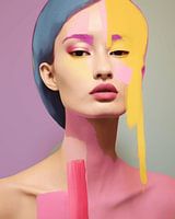 Modern abstract portret in knalkleuren. Door verschillende technieken te combineren is een bijzonder kleurrijk an abstract portret ontstaan. Kies zelf het formaat en het materiaal.