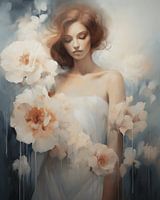 Modern chic portret met een zachte, poëtische uitstraling. Deze blikvanger in roze pastelkleuren is een echte blikvanger voor je interieur.