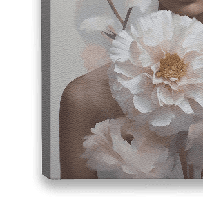 Modern chic portret met een zachte, poëtische uitstraling. Deze blikvanger in roze pastelkleuren is een echte blikvanger voor je interieur.