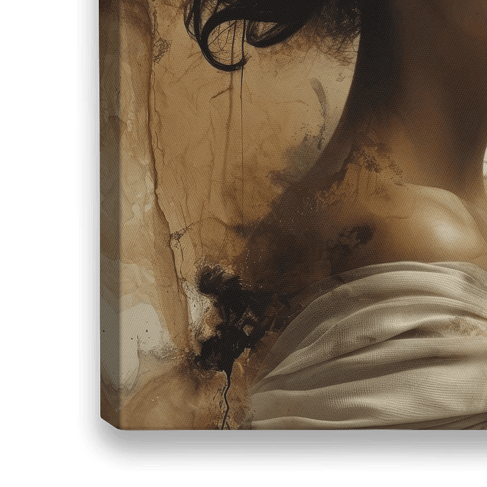 Mixed media digital art portret. Modern en abstract portret van een jonge Afrikaanse vrouw in aardetinten en goud. Een bijzondere blikvanger voor je wand!