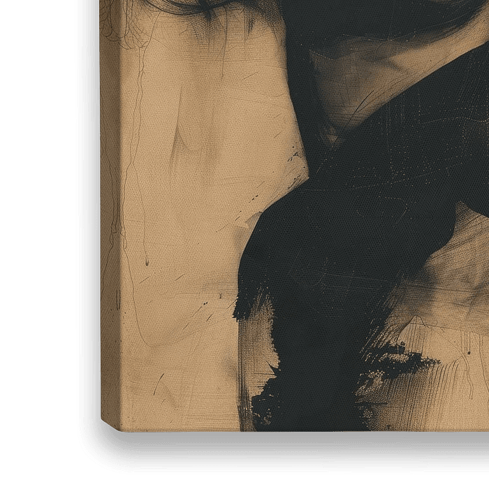 Modern en abstract portret in aardetinten, bruin en zwart. Kies zelf het formaat en materiaal bij dit werk en maak er een echte blikvanger van voor jouw interieur. Contemporary art.