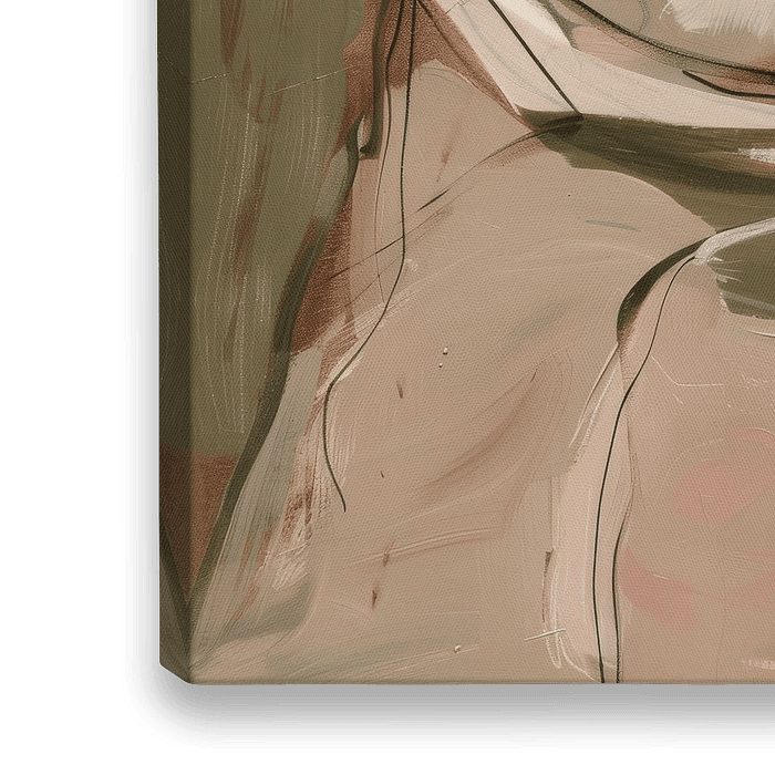 Modern en abstract portret in aardetinten en roze. Kies zelf het formaat en materiaal bij dit werk en maak er een echte blikvanger van voor je interieur, helemaal in de trend van nu!
