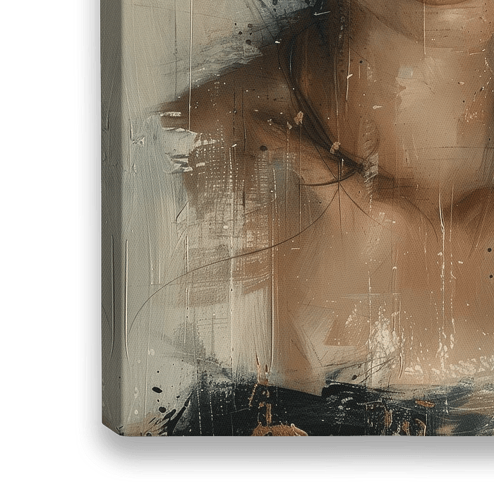 Modern en abstract portret van een jonge vrouw in aardetinten.