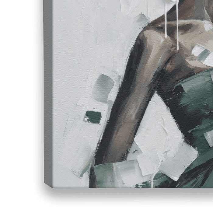 Modern en abstract portret in zwart, grijs, bruin, wit en groen. Kies zelf het formaat en materiaal bij dit werk en maak er een echte blikvanger van voor jouw interieur.