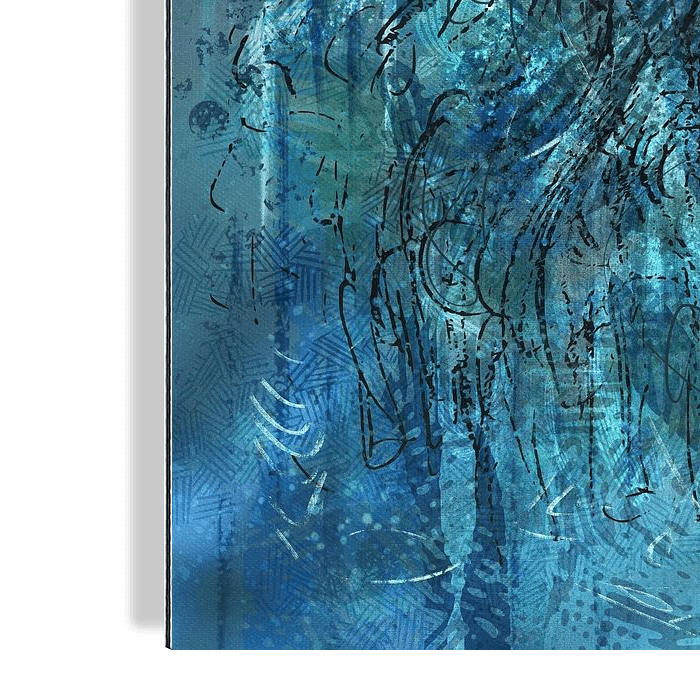 De kleuren van dit kunstwerk zijn gebaseerd op parelmoer. Aqua blauw en groene accenten worden afgewisseld met tinten lila en turquoise. Deze stoere schotse hooglander kop spat van het doek. De hoorns van de hooglander zijn omhoog gericht en hoewel je de ogen niet direct ziet kijkt dit robuuste rund je uitdagend aan. Het werk heeft een vierkant formaat. Door de hoge resolutie is dit kunstwerk ook heel geschikt voor grootformaat prints.