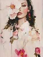 Modern portret "Flower girl" in pastelkleuren. Een bijzondere blikvanger voor je interieur! Kies zelf het formaat en materiaal bij dit werk en maak het helemaal naar wens.