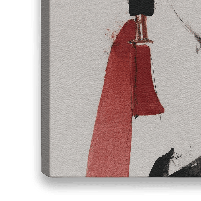 De combinatie van zachte aquarelstructuren en krachtige penseelstreken in rood, zwart en goud maakt dit portret onweerstaanbaar eigentijds. Haar blik verraadt rust én vastberadenheid: een stille kracht in een wereld die te luid is. Perfect…