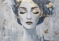 Modern portret in blauw met gouden accenten. Kies zelf het formaat en materiaal bij dit werk en maak er een echte blikvanger van.