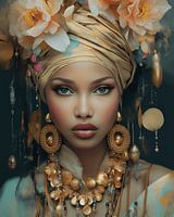 Modern digital art portret van een jonge vrouw met bloemen in pastelkleuren. Dit is een echte blikvanger! Kies zelf het formaat en materiaal en maak het helemaal passend voor jouw interieur.